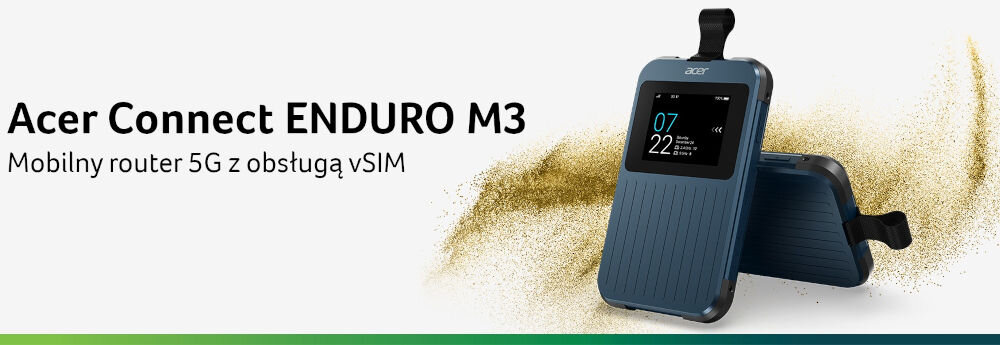 - Router ACER Connect Enduro M3 5G 2.4 / 5 GHz (DualBand), Gniazdo SIM, Pakiet danych 20GB