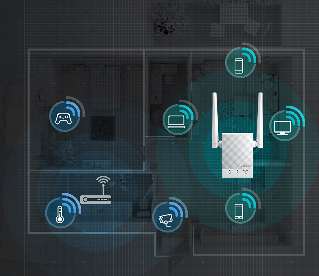 ASUS RP-AC51 to wzmacniacz sygnału 802.11ac, który współpracuje z każdym typem routera w celu powiększenia zasięgu, wzmocnienia sygnału oraz wyeliminowania martwych punktów. Jest to idealny dodatek do posiadanej sieci 802.11ac, który rozszerzy sygnał Wi-Fi do każdego miejsca w Twoim domu.