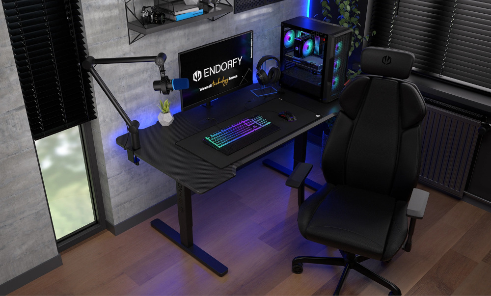 Jednym z największych atutów biurka ENDORFY jest jego duży blat o grubości 1,8 cm. Wymiary 150 × 78 cm gwarantują wygodę zarówno podczas pracy, jak i w trakcie gry na komputerze czy streamingu. Na blacie zmieścisz nie tylko mniejsze akcesoria biurowe, ale i komputer, lampy, a nawet kilka ekranów. Co więcej, udźwig biurka to aż 80 kilogramów – dzięki temu nie musisz obawiać się o to, że waga Twojego sprzętu jest za duża. Teraz możesz cieszyć się ogromną powierzchnią do działania – bez żadnych ograniczeń. Do biurka doczepiony jest ponadto metalowy uchwyt na słuchawki – już zawsze będziesz mieć je pod ręką!