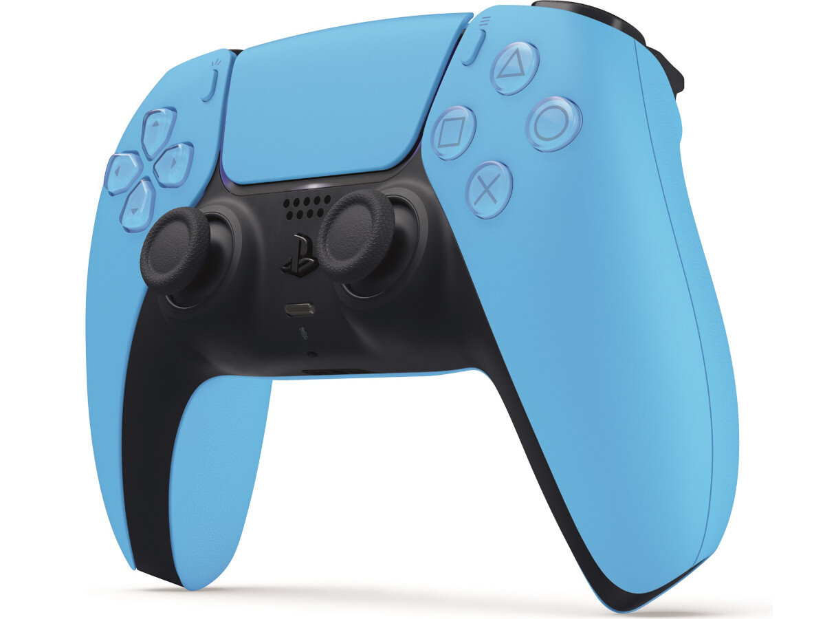 Zestaw zawiera: kontroler Sony DualSense w kolorze błękitnym, instrukcję obsługi oraz kartę gwarancyjną.