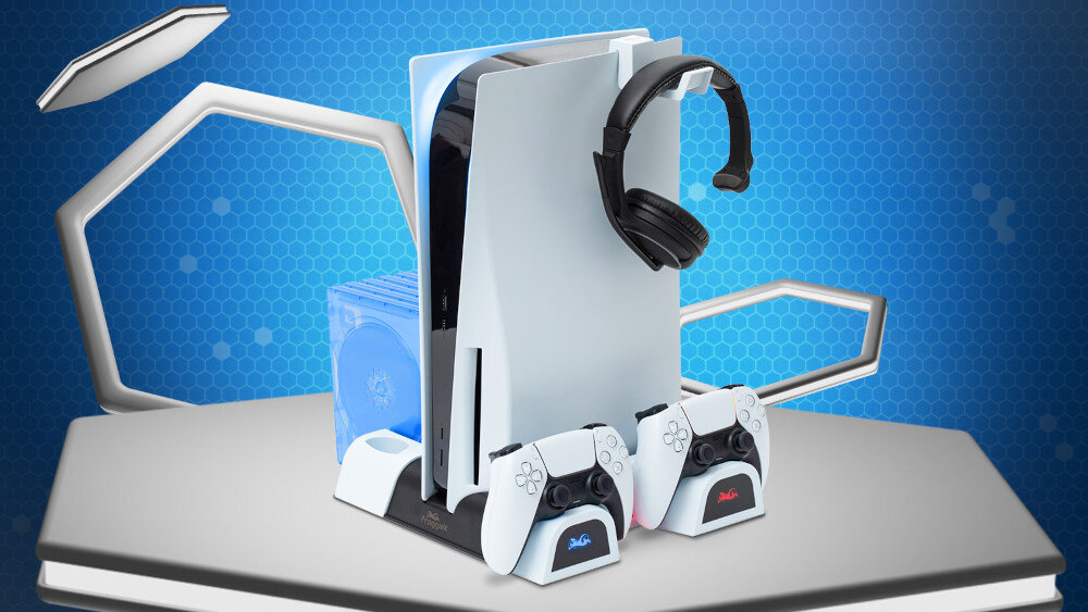 Zawartość zestawu: | Ładowarka na 2 kontrolery, Podstawka chłodząca, Stojak na gry, Wieszak na słuchawki |