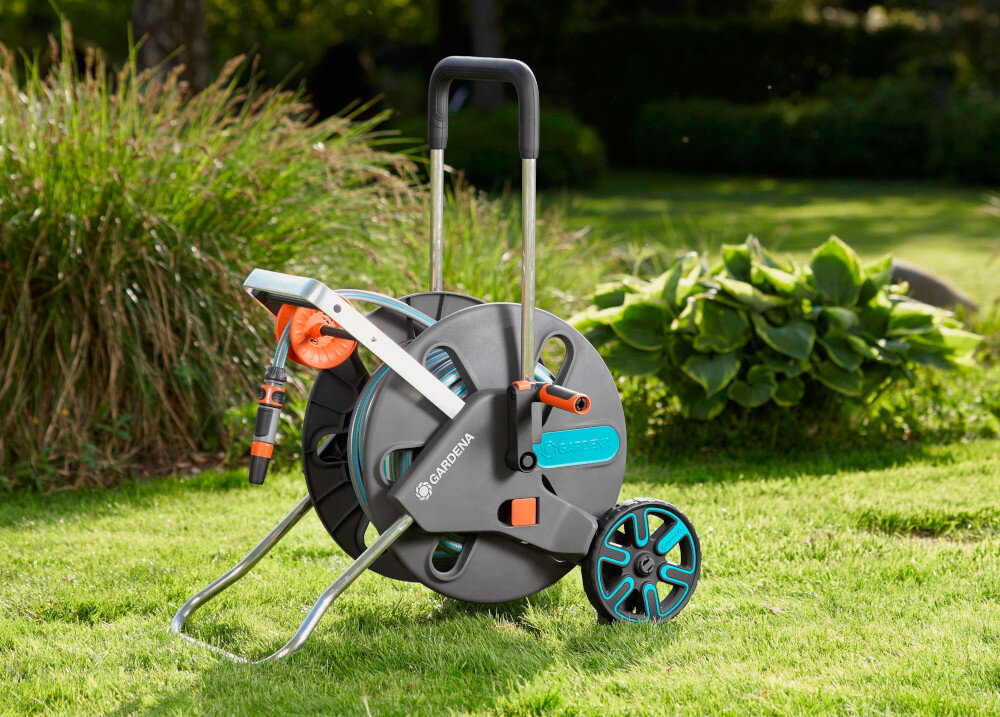 Wąż do wózka mocowany jest skośnie od wewnętrznej strony rolki, co zapobiega zaginaniu się węża, w efekcie otrzymujesz sprzęt, który gwarantuje maksymalny przepływ wody, dzięki czemu twoje rośliny będą zawsze idealnie i szybko podlane. Wózek został wyposażony w liczne elementy Original GARDENA System, dzięki którym podlewanie ogrodu stanie się czystą przyjemnością. W wyposażeniu znajduje się zraszacz prosty, jedno szybkozłącze, 3 szybkozłączki oraz 2 przyłącza kranowe i jeden adapter, więc jest to sprzęt gotowy do pracy od razu po wyjęciu z opakowania.