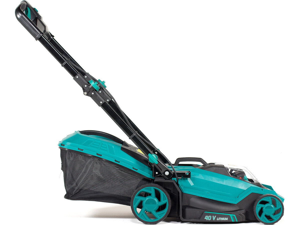 Kosiarka NAC LB-2B40-40-2X20V została wyposażona w duże koła: tylne o średnicy 20 cm oraz przednie 15 cm, które poprawiają komfort jej prowadzenia i chronią trawnik. Ergonomicznie wyprofilowany uchwyt z możliwością zmiany wysokości dodatkowo podnosi wygodę prac. Przechowywanie i transportowanie kosiarki NAC LB-2B40-40-2X20V jest niezwykle łatwe dzięki systemowi szybkiego składania rączek.