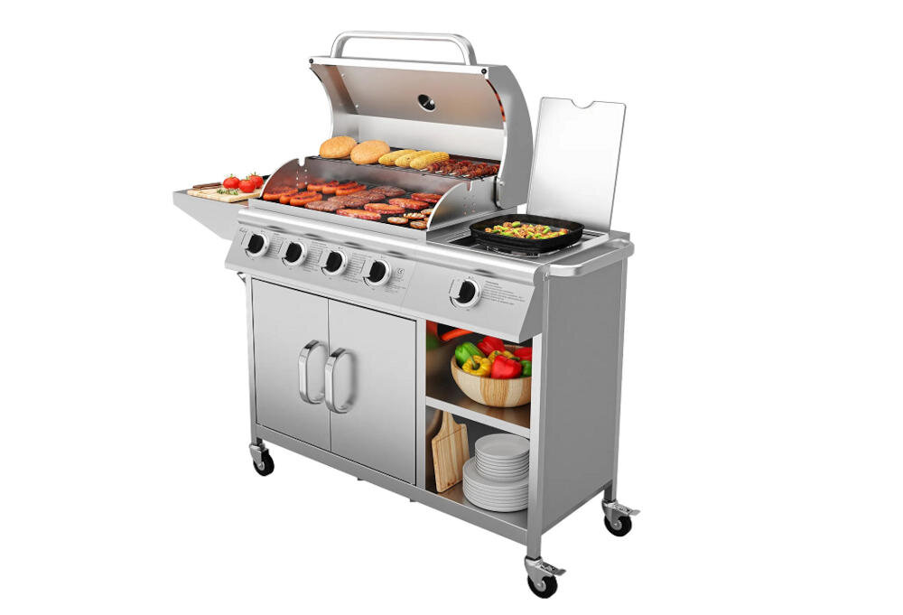 Warto wspomnieć, że grill wyposażony jest w dodatkowy palnik. Możesz na nim postawić garnek lub patelnię, żeby szybko coś ugotować lub usmażyć. To bardzo praktyczne i wygodne rozwiązanie podczas rodzinnego grillowania! Jeśli nie chcesz z niego korzystać - zamknij pokrywę i zamień palnik w dodatkowy blat roboczy.