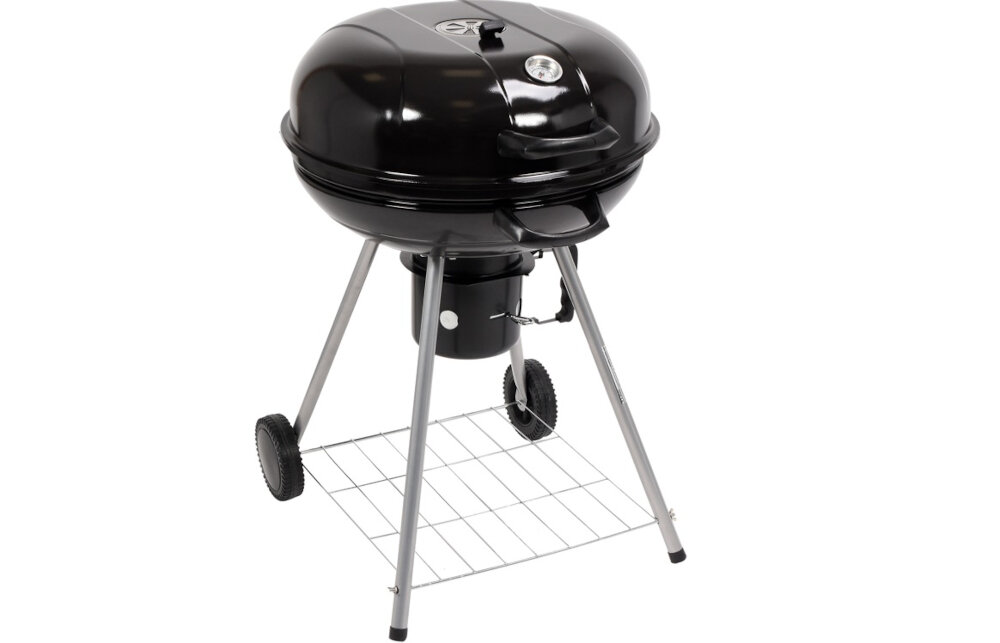 Chromowany ruszt z dodatkową powłoką o średnicy 54 cm. Dwa obrotowe kółka ułatwią transport grilla.
