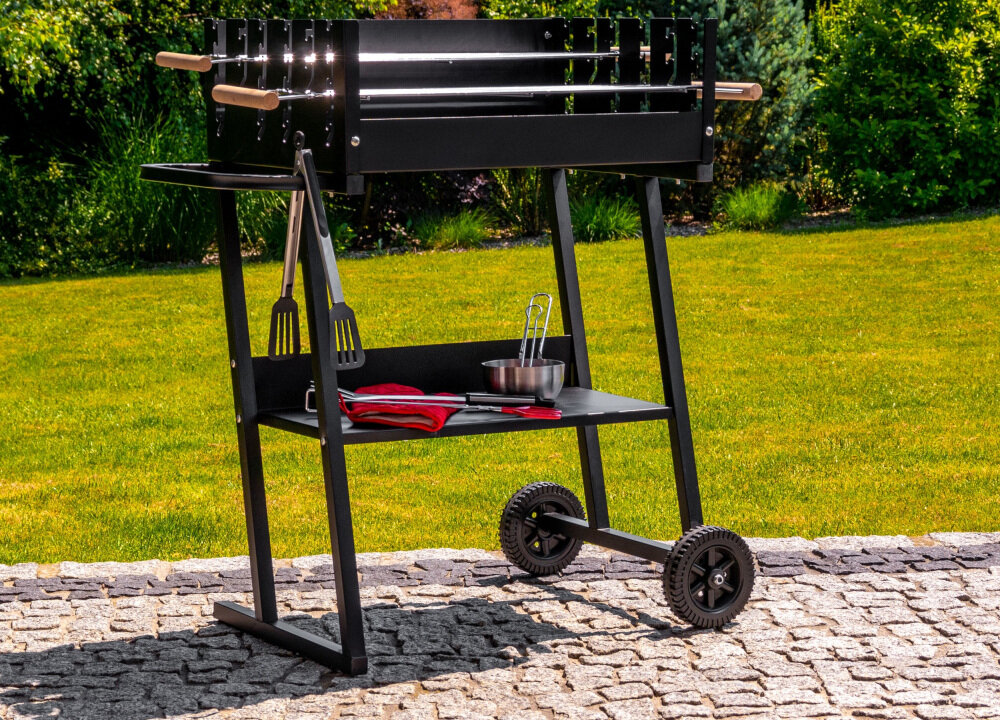 Wózek zawiera również wytrzymałe koła, które ułatwiają przemieszczanie grilla po ogrodzie. W związku z tym możesz ustawić swojego grilla w dowolnym miejscu, w zależności od potrzeb.