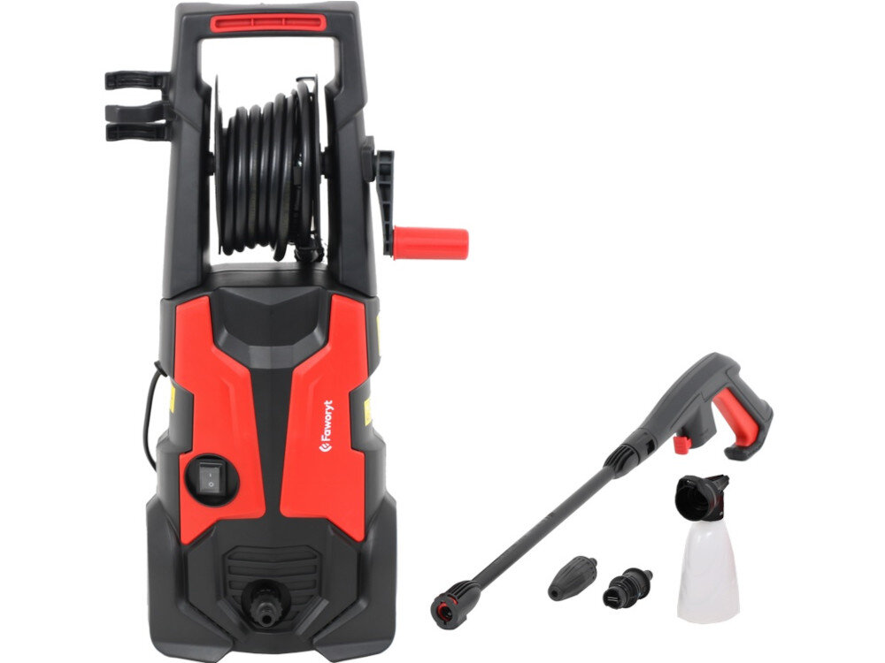 Myjka ciśnieniowa FAWORYT KRM 1900, 2 dysze, lanca, wąż 5m, pojemnik na detergent, pistolet, instrukcja obsługi w języku polskim, karta gwarancyjna.