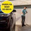 *Myjka ciśnieniowa zużywa o 80% mniej wody na jedno czyszczenie, przy założeniu, że przepływ wody w myjce wynosi 40% przepływu węża ogrodowego, a czas czyszczenia jest o połowę krótszy. Wartości te mogą się różnić w zależności od zastosowania, klasy urządzenia i natężenia przepływu wody z węża.