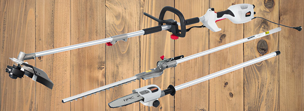 | Wyposażenie: | Głowica tnąca z żyłką, Łańcuch, Osłona, Pas nośny, Prowadnica, Przystawka kosa/podkaszarka, Przystawka nożyce do żywopłotu, Przystawka pilarka do gałęzi, Tarcza tnąca, Uchwyt |