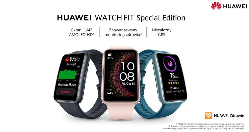 Seria smartwatchy HUAWEI WATCH FIT jest powszechnie doceniana dzięki połączeniu stylowego wyglądu i niewielkiej wagi z mnogością funkcji sportowych oraz zdrowotnych. A wszystko to w niezwykle przystępnych cenach. HUAWEI WATCH FIT Special Edition został wyposażony w duży i wyraźny 1,64-calowy ekran AMOLED, wbudowany GPS oraz pojemną baterię, dzięki której możesz z niego korzystać nawet przez 9 dni.