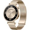 • HUAWEI WATCH GT 4 41 mm Elegant: z kopertą w kolorze złotym, ze stalową bransoletą typu milanese w kolorze złotym,