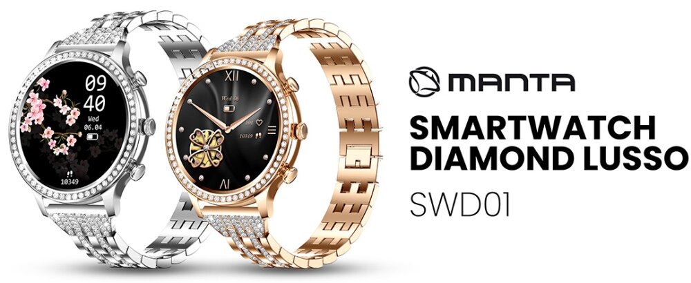 - Smartwatch MANTA Diamond Lusso Srebrny + Bransoletka Yes