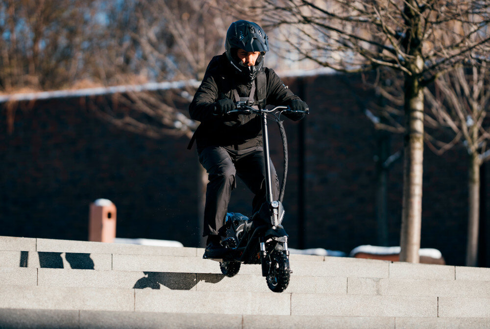 Dodatkowym atutem pojazdu jest podwójna amortyzacja – z przodu i z tyłu, dzięki czemu można nim zdobywać nie tylko miejską dżunglę, ale też trudne tereny. Jest to hulajnoga terenowa, która idealnie sprawdzi się na nierównych bezdrożach, zapewniając doskonałe wrażenia i mnóstwo zabawy.