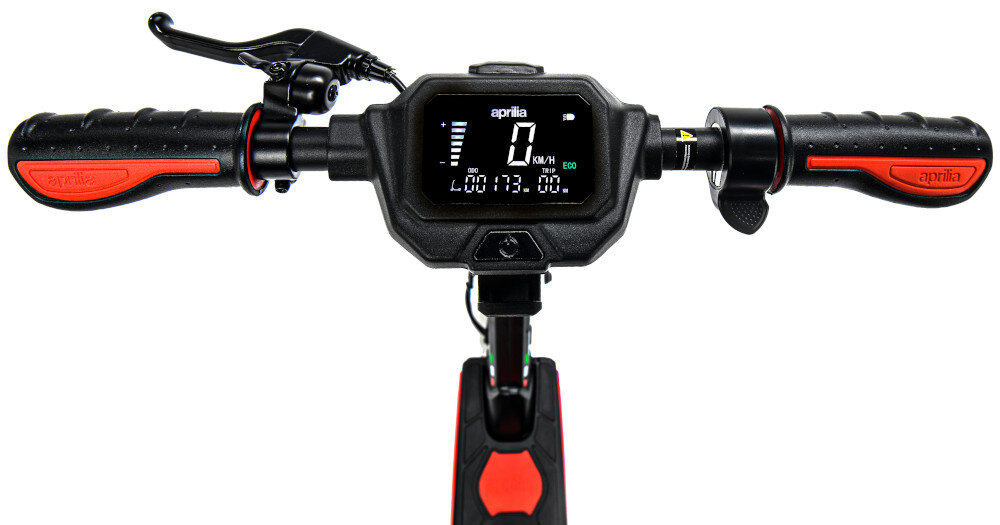 Zintegrowany z kierownicą kolorowy wyświetlacz LCD 3,5-calowy pozwala jednym spojrzeniem sprawdzić wszystkie istotne parametry i zarządzać wszystkimi ustawieniami w prosty i intuicyjny sposób.. Możesz odczytać aktualną prędkość, stan baterii czy wybrany tryb jazdy. Oprócz tego wyświetlacz posiada bardzo przydatną funkcję kodu błędu, który wyświetli się, gdy system wykryje błąd w działaniu APRILIA ESR1.