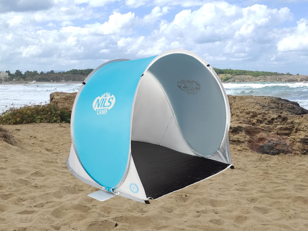 Namiot NILS CAMP NC3173 skutecznie osłoni Ciebie i Twoich najbliższych przed promieniami słonecznymi i wiatrem podczas wypoczynku na świeżym powietrzu. Ma on powłokę anty UV 30 SPF, dzięki czemu skutecznie chroni przed palącym słońcem. Jego ogromną zaletą jest to, że jest to namiot samorozkładalny, co oznacza, że wystarczy wyjąć go z pokrowca i postawić na ziemi, by po kilku sekundach był już gotowy.