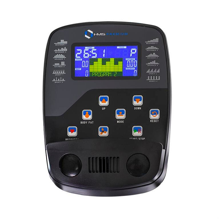 H1742 HMS PREMIUM – orbitrek magnetyczny z generatorem. Trenażer eliptyczny marki HMS PREMIUM wyposażony jest w głośniki i wentylator. Posiada również własny generator energii, który pozwala na korzystanie ze sprzętu bez podłączania go do zewnętrznego źródła energii – napędzamy go siłą własnych mięśni.