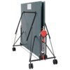 Blat o wymiarach 274 x 152,5 cm umieszczony na wysokości 76 cm został wykonany z płyty wiórowej 19 mm w kolorze zielonym, która została wielokrotnie powlekana, co wpływa na jej trwałość. Stelaż stołu wykonano z profili rurowych 25 mm powleczonych proszkowo, co daje pewność, że przez długi czas będzie wyglądał świetnie. Dzięki 4 podwójnym, skrętnym kołom 125 mm, łatwo można przesunąć stół w wybrane przez siebie miejsce i np. ustawić go złożonego pod ścianą, kiedy nie jest używany.