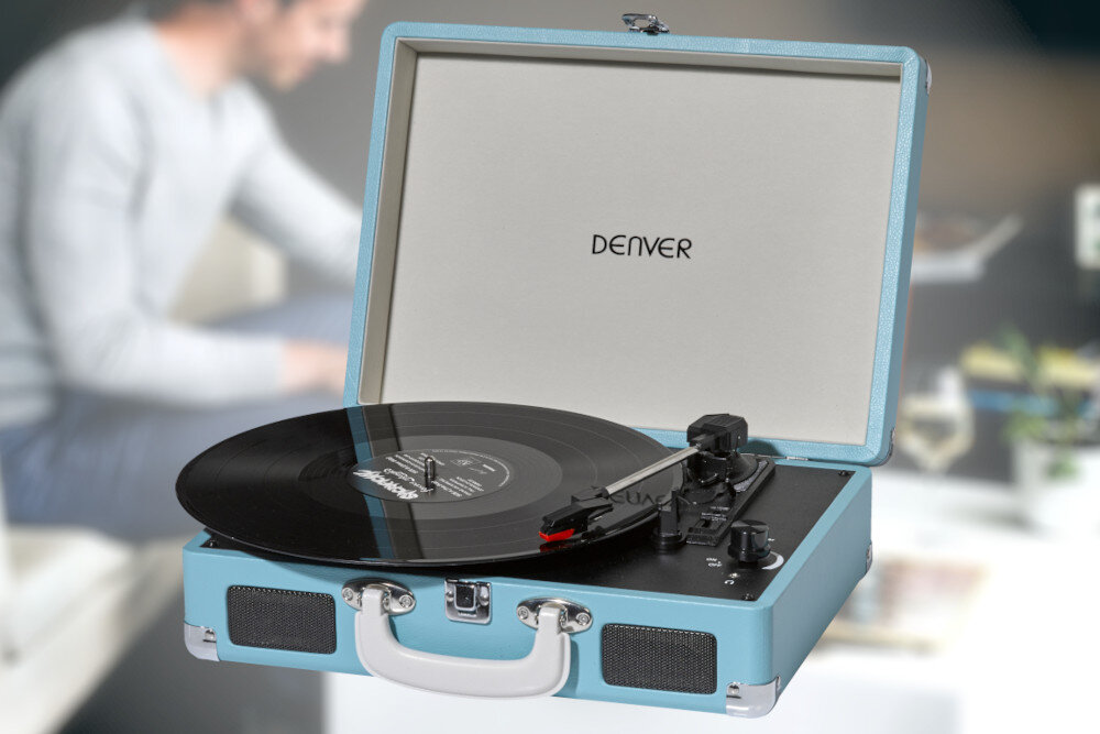 Gramofon DENVER VPL-120 Niebieski, Manualny, Napęd paskowy, USB, Wbudowane głośniki, Prędkość odtw. 33 1/3,45,78 obr./min