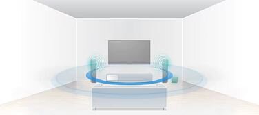 Idealna do mniejszych pomieszczeń technologia S-Force PRO Front Surround wytwarza pole akustyczne wirtualnego dźwięku przestrzennego przy użyciu zaledwie 2 głośników. |
