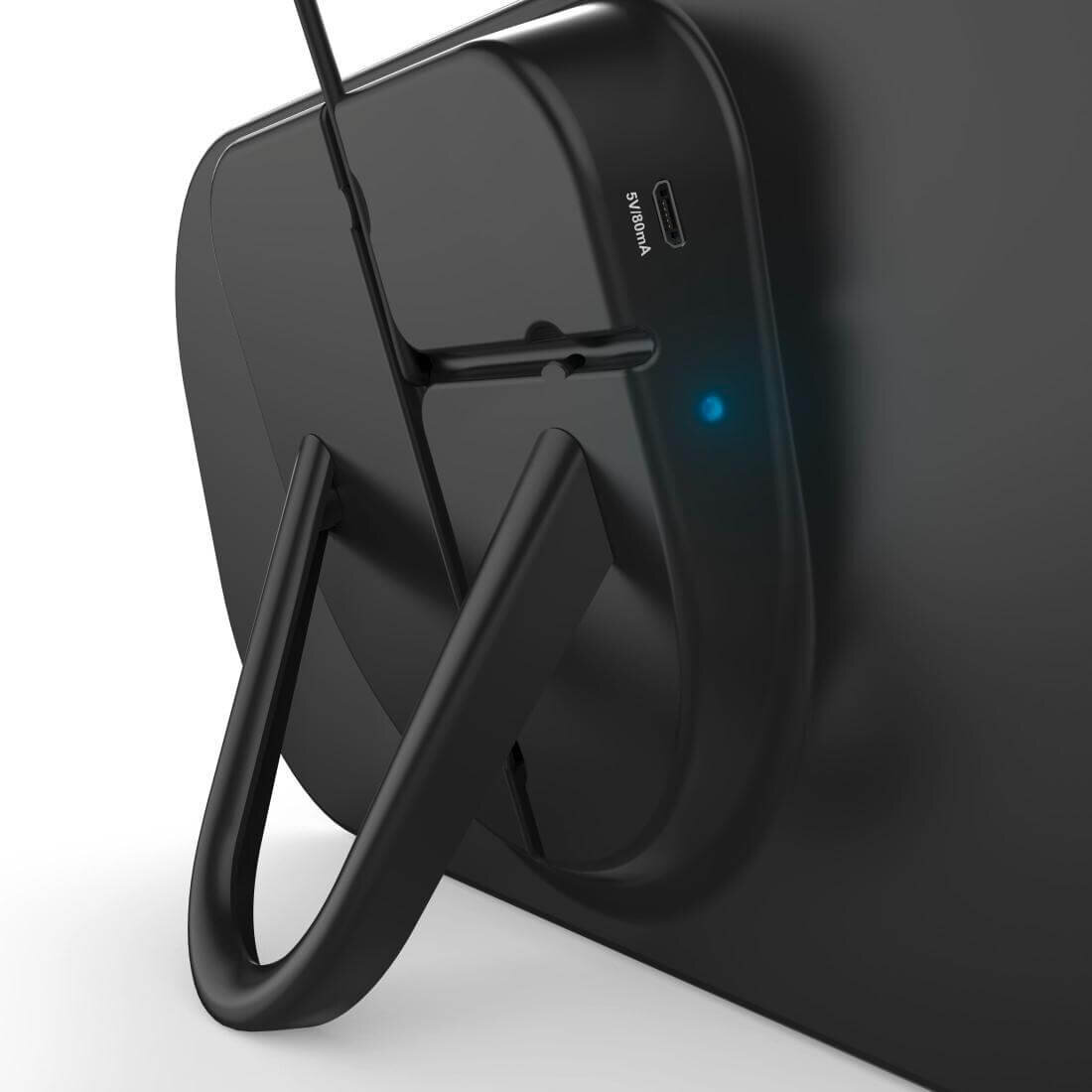 - Aktywna antena pokojowa o wysokiej rozdzielczości UHD-DVB-T/T2 z automatyczną regulacją wzmocnienia sygnału dla zapewnienia niezakłóconego odbioru telewizji cyfrowej