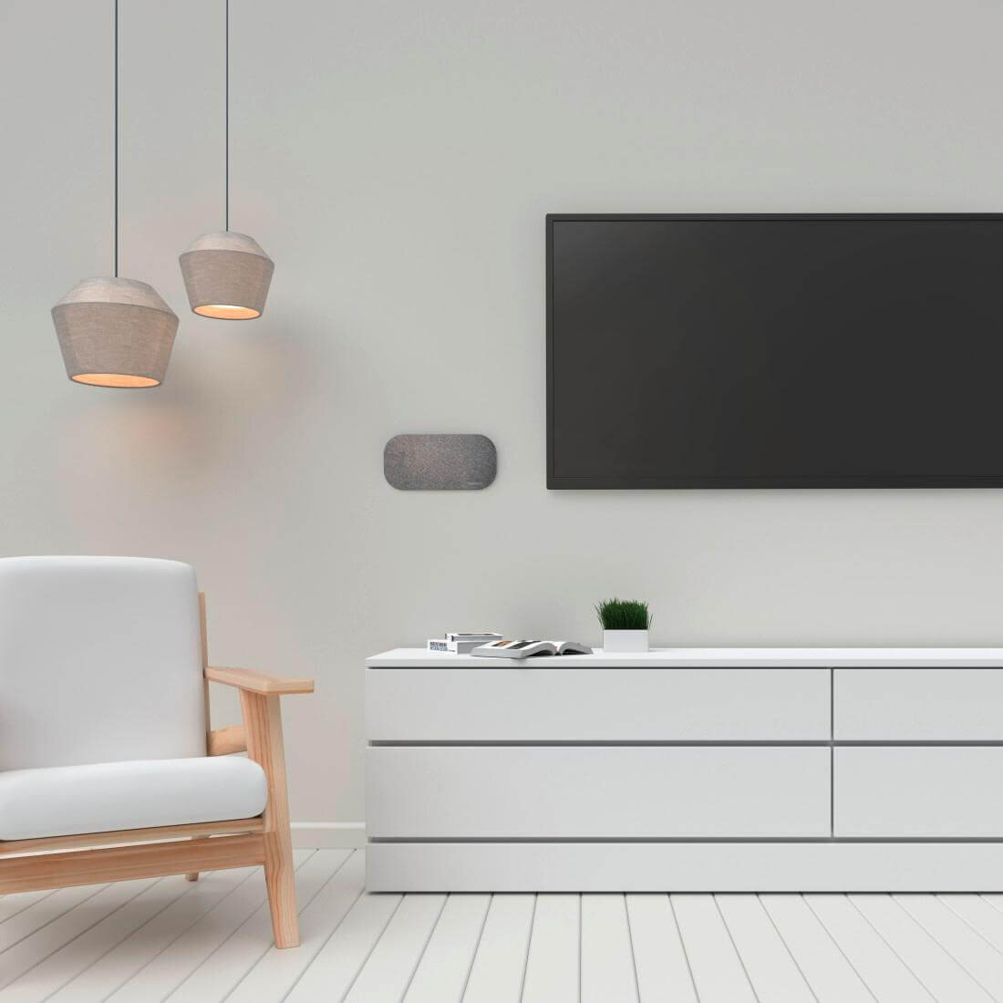 Płaski kształt oraz designerska antena z tekstylnym wykończeniem w pięknym odcieniu szarości tworzy ozdobę każdego pomieszczenia. Jej nowoczesny wygląd aż chce się wyeksponować w pokoju.