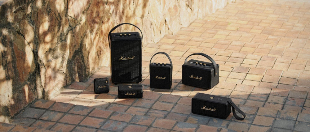 Głośnik mobilny MARSHALL Kilburn II waży 2,5 kg i ma wymiary 243 x 162 x 140 mm, co sprawia, że jest łatwy do przenoszenia i idealny do użytku w różnych miejscach. Klasa wodoodporności IPX2 chroni urządzenie przed drobnymi zachlapaniami, dzięki czemu można go używać na zewnątrz bez obaw.