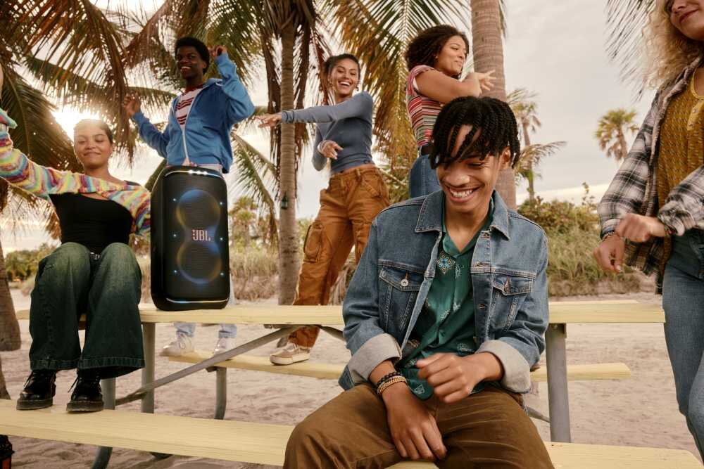 Innowacyjna technologia AI Sound Boost analizuje sygnał w czasie rzeczywistym, dostosowując parametry głośnika, aby uzyskać jak najlepszą jakość dźwięku. Sparuj dwa głośniki w system stereo, aby uzyskać jeszcze szerszą scenę dźwiękową, lub połącz wiele głośników JBL PartyBox przy użyciu Auracast. Dzięki aplikacji mobilnej JBL PartyBox możesz dodawać interaktywne efekty imprezowe, dostosowywać korektor dźwięku i kontrolować światła, aby stworzyć idealny klimat imprezy.