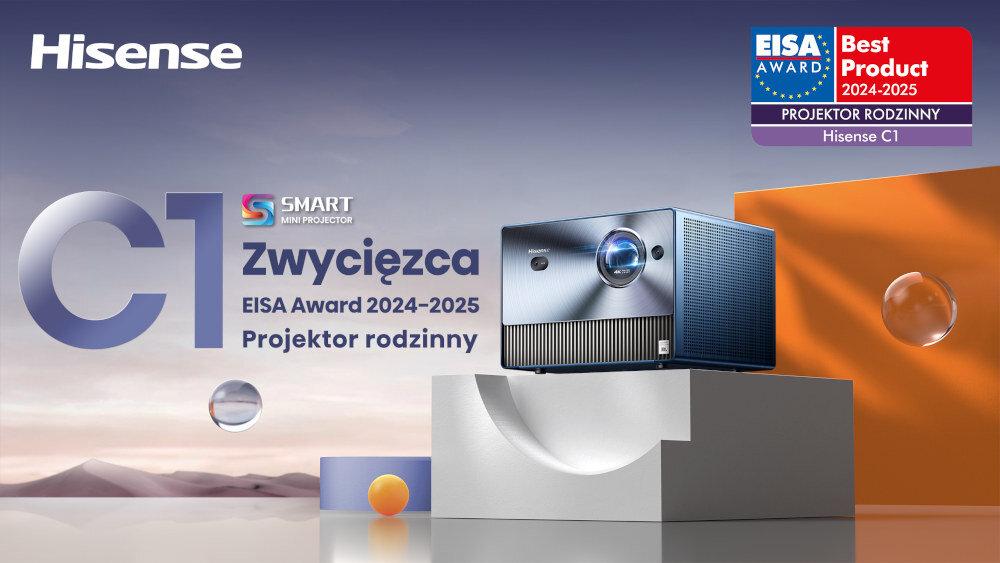 Projektor HISENSE C1 zachwyca niezwykłym designem, prostą formą i pięknymi detalami. To urządzenie przyciąga uwagę pod każdym kątem.