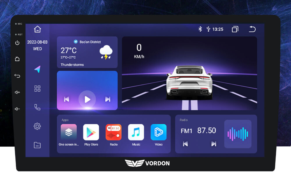 Responsywny ekran dotykowy o dużej przekątnej zapewnia wyjątkowo intuicyjne korzystanie z wszystkich funkcji radia VORDON HX-100. Dzięki zoptymalizowanemu oprogramowaniu przełączanie pomiędzy aplikacjami czy przeszukiwanie biblioteki muzycznej jest płynne i błyskawiczne. Wyobraź sobie, że możesz przeszukiwać ulubione albumy czy stacje radiowe gestami, podobnie jak w smartfonie.