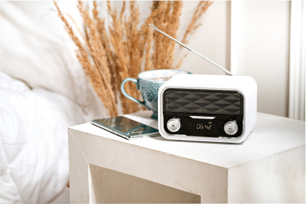 Z łatwością znajdziesz ulubione stacje radiowe w zakresie od 87,5 do 108 MHz. Odtwarzaj pliki muzyczne bezpośrednio z urządzeń USB lub kart pamięci Micro SD. Dodatkowe wejście AUX umożliwia podłączenie innych urządzeń audio. Pamięć 50 stacji zapamiętuje ulubione stacje radiowe dla szybkiego dostępu.