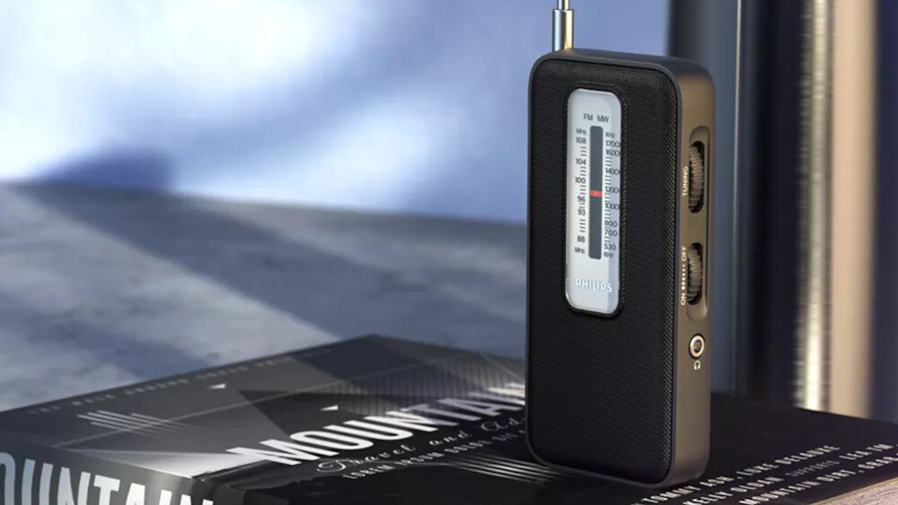 PHILIPS TAR1506 to niewielkie radio, które można obsługiwać jedną ręką. Regulacja głośności oraz włączanie/wyłączanie odbywają się przy użyciu dedykowanego pokrętła. Wbudowany port słuchawkowy pozwala na słuchanie muzyki bez przeszkadzania innym, a przełącznik na boku umożliwia wybór między sygnałem FM a MW.