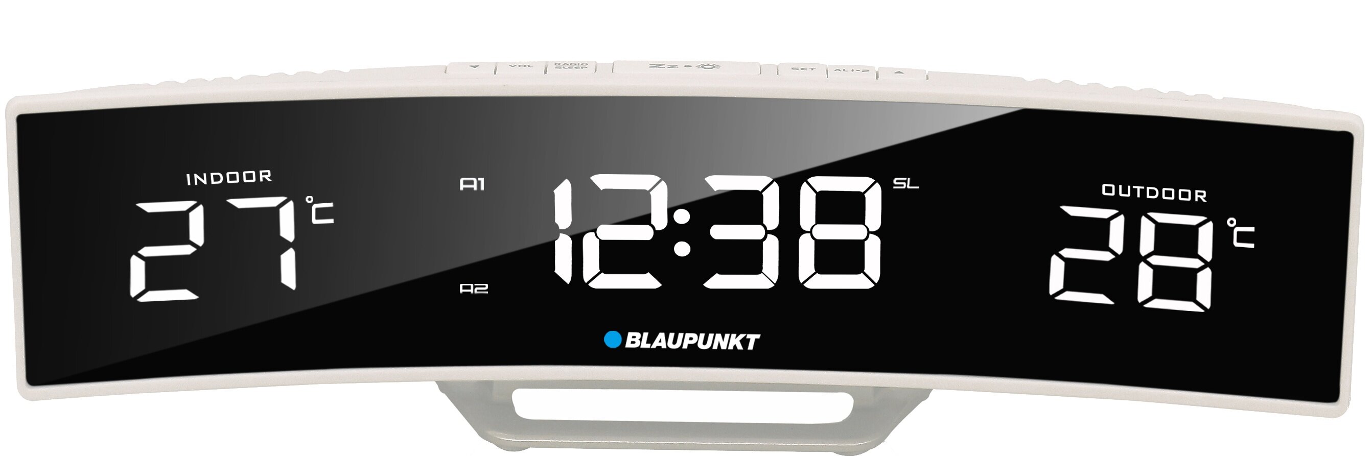 - Radiobudzik BLAUPUNKT CR12WH Biały, Tuner FM, Wyświetlacz LCD z regulacją jasności, Czujnik temperatury, Zasilanie sieciowe