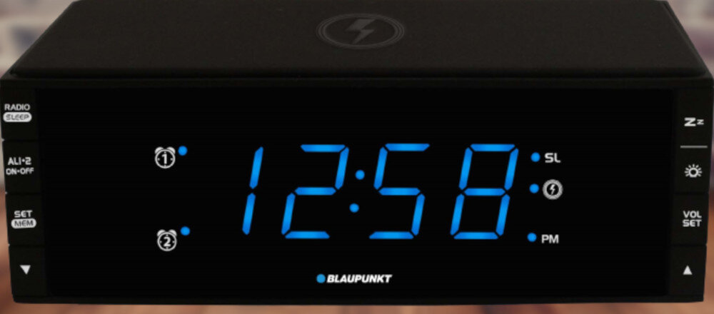 Radiobudzik BLAUPUNKT CR55CHARGE daje możliwość podładowania telefonu na dwa sposoby. Pierwszy z nich to klasyczne ładowanie przewodowe. Można również położyć telefon tylną stroną na górę radiobudzika, by rozpocząć ładowanie bezprzewodowe.