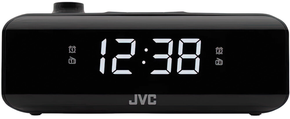 Radiobudzik JVC RA-E211B Czarny, Tuner FM/AM, Wyświetlacz LED, Projekcja czasu na ścianie, Zasilanie bateryjno-sieciowe