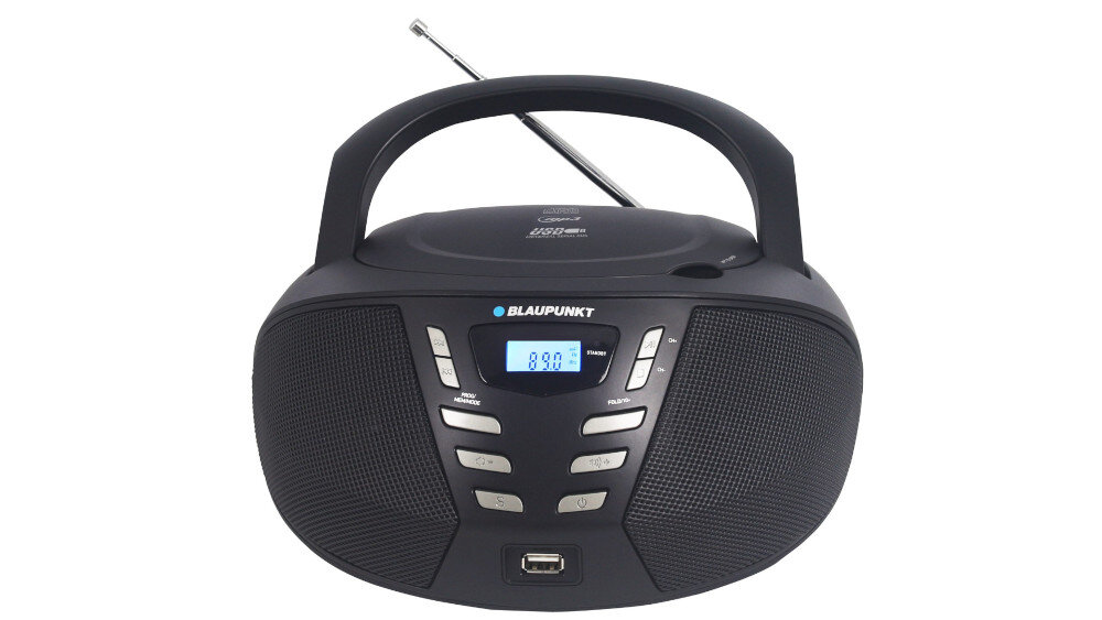 Radioodtwarzacz/Bombox BLAUPUNKT BB7BK Czarny, Odtw. CD, CD-R, CD-RW, Wejście USB/AUX/Mini-jack, Tuner FM, Zasilanie Bateryjne