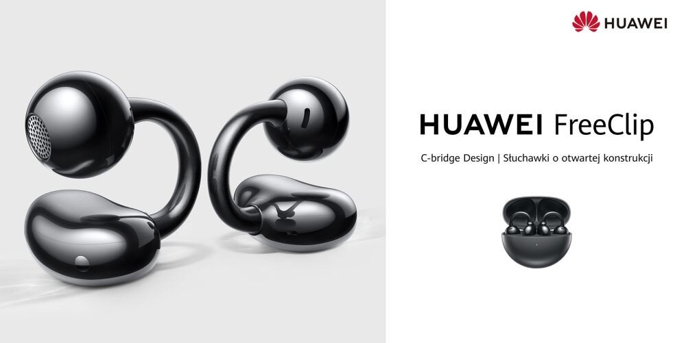 HUAWEI FreeClip to pierwsze wprowadzone na rynek słuchawki, które są zgodne z ideą Huawei "Fashion Forward". Stanowią połączenie najlepszych cech zarówno modnego wzornictwa, jak i zaawansowanej technologii otwartej konstrukcji. Są też pierwszym urządzeniem Huawei z kategorii OWS (Open Wireless Stereo). Na tle konwencjonalnych rozwiązań wyróżniają się innowacyjną konstrukcją w formie klipsa na ucho. Klips ten składa się z 3 części: kulki akustycznej, którą wkładasz do ucha; części zewnętrznej z mikrofonem i baterią, którą umieszczasz za małżowiną; oraz łączącego elastycznego je mostka C bridge Design. Wykonany ze stopu niklowo-tytanowego łącznik pozwoli Ci nadać klipsowi optymalny kształt, dopasowany do Twojego ucha.