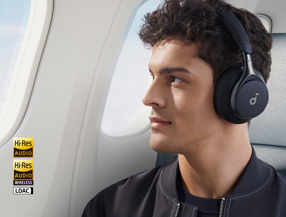 Hi-Res Audio w słuchawkach Space One to doskonałe doświadczenie dźwiękowe. Dzięki specjalnie dostosowanym dynamicznym przetwornikom (40 mm) i obsłudze LDAC, uzyskujesz trzykrotnie lepszą jakość dźwięku niż w zwykłych słuchawkach Bluetooth. Odkryj głębokie brzmienie i precyzyjne detale, które podkreślą każdy dźwięk.