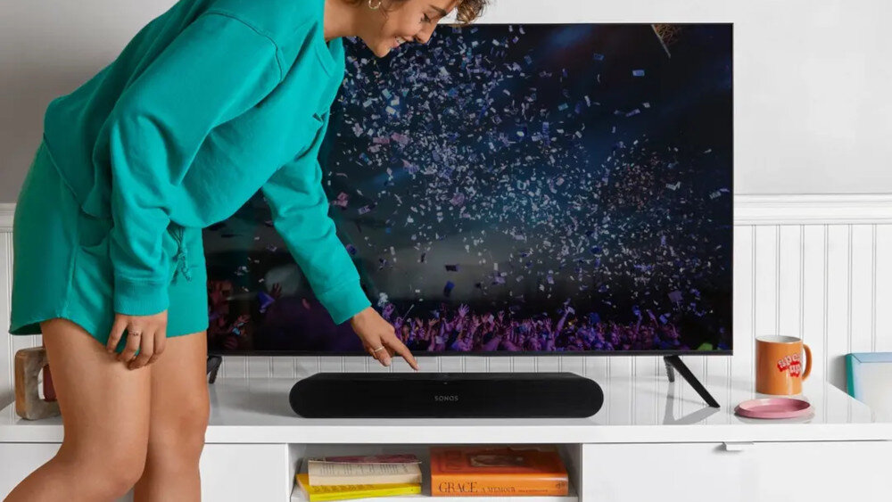 Wszystkie przetworniki znajdują się w przedniej części soundbara SONOS Ray, dzięki czemu ograniczone zostało odbijanie się fal od pobliskich przedmiotów. Umieszczając urządzenie w dedykowanej wnęce lub na stojaku, możesz cieszyć się dobrym brzmieniem.