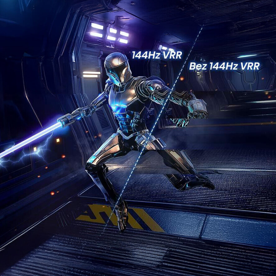 144Hz Game Mode PRO to funkcja zaprojektowana z myślą o graczach, którzy oczekują ultrapłynnej rozgrywki i pełnej kontroli nad każdą klatką. Częstotliwość odświeżania 144 Hz oraz technologia VRR (Variable Refresh Rate) zapewniają minimalne opóźnienia i natychmiastową reakcję na każdy ruch.