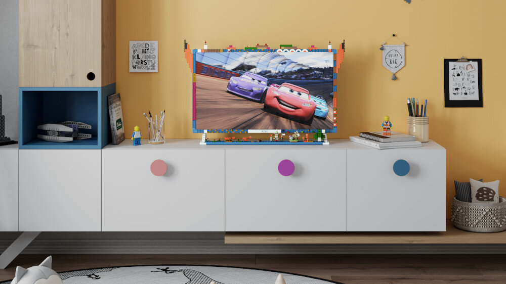 Plastikowe klocki konstrukcyjne można przymocować do ramki telewizora, stojaków i płyty środkowej KIVI Kids TV. Zbuduj co tylko chcesz na ramce swojego telewizora - nie ma ograniczeń co do rozmiaru, kształtu czy koloru. Dziecko może za każdym razem tworzyć unikalną, wyjątkową ramkę, odzwierciedlającą jego osobowość, kreatywność i artystyczny gust. Telewizor jest kompatybilny z najpopularniejszymi seriami klocków konstrukcyjnych - możesz użyć zestawu, który Twoje dziecko już ma lub kupić nowy w wybranym przez siebie motywie.