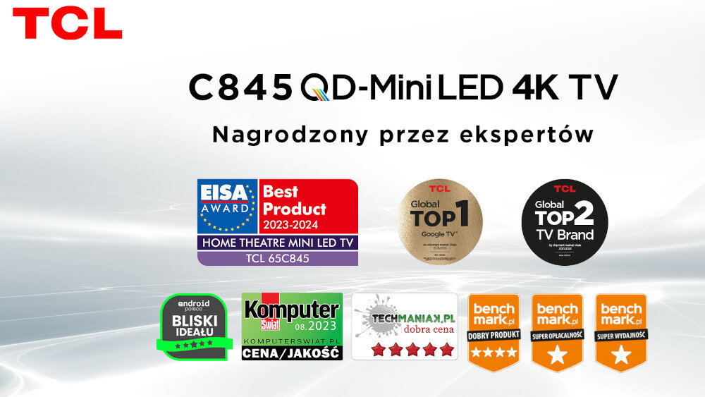- Telewizor TCL 85C845 85" MINILED 4K 144Hz Google TV Dolby Vision Dolby Atmos HDMI 2.1
