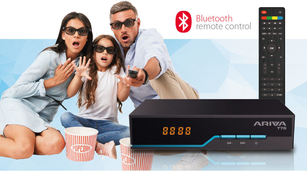 Pilot Bluetooth dołączony do tunera FERGUSON Ariva T75 umożliwia niezwykle wygodną obsługę bez konieczności celowania w diodę IR. Programowalne timery pozwalają ustawić czas wyłączenia urządzenia oraz zaprogramować czas nagrywania, dzięki czemu nie umknie Ci żaden film ani program, nawet podczas dłuższej nieobecności. Dodatkowo dekoder umożliwia wyświetlanie napisów i włączenie blokady rodzicielskiej.