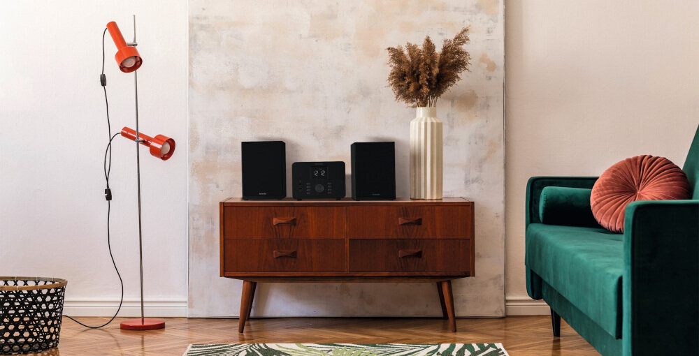 Urządzenie posiada wiele wejść i wyjść, w tym wejście liniowe audio AUX, wyjście liniowe audio oraz wyjście słuchawkowe. Złącze USB pozwala na podłączenie pendrive’a z ulubioną muzyką. Typ kolumn Bass Reflex zapewnia głębokie i wyraźne brzmienie. Kompaktowe wymiary kolumn (150 x 220 x 130 mm) oraz zestawu (185 x 215 x 137 mm) umożliwiają łatwe umieszczenie sprzętu w dowolnym miejscu.