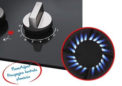 | FlameAdjust - Precyzyjna kontrola płomienia Dopasuj idealnie wielkość płomienia i nigdy więcej nie martw się o przypalone potrawy. Specjalna skala pozwoli Ci na precyzyjną kontrolę nad płomieniem. |