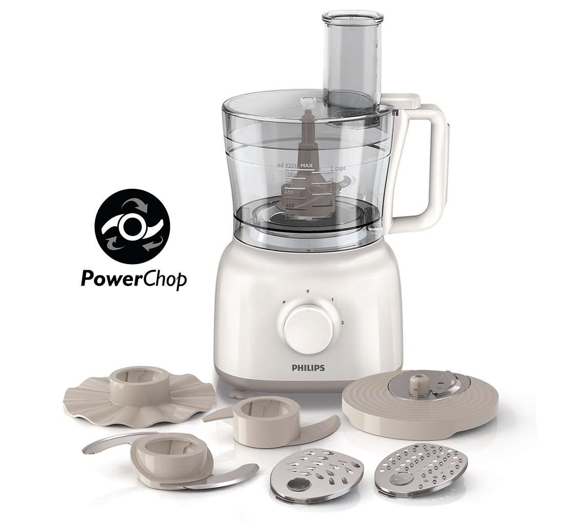 | Silnik o mocy 650 W zapewnia dużą moc miksowania Ten robot kuchenny firmy Philips ma silnik o dużej mocy, dzięki czemu zapewnia moc i funkcje przydatne podczas przygotowywania ulubionych dań. |