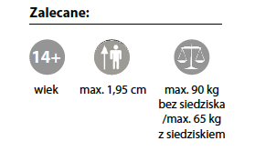 Przedstawione osiągi mogą ulec pomniejszeniu w zależności od wagi użytkownika, terenu po jakim się porusza oraz warunków atmosferycznych takich jak silny wiatr czy temperatura otoczenia poniżej 5 stopni.