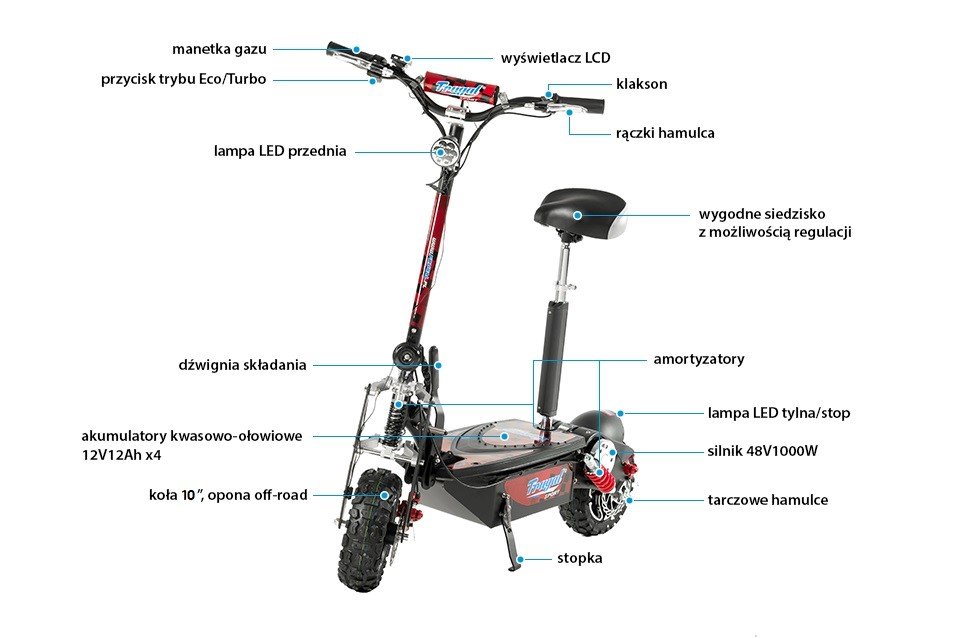Hulajnoga elektryczna FRUGAL Sport w wersji z 12" kołami i oponą typu off road - to nasz największy i najszybszy model dla profesjonalistów.