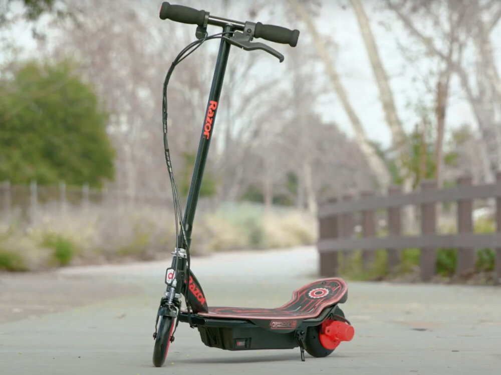 Hulajnoga elektryczna RAZOR Power Core E90 Glow przeznaczona jest dla dzieci powyżej 8 roku życia. Hulajnoga w czarno-czerwonej kolorystyce waży zaledwie 9,8 kg, została wyposażona w bezszczotkowy silnik, ręczny hamulec i stalową ramę. Jej niewątpliwą zaletą jest nowoczesny design i podświetlany podest.