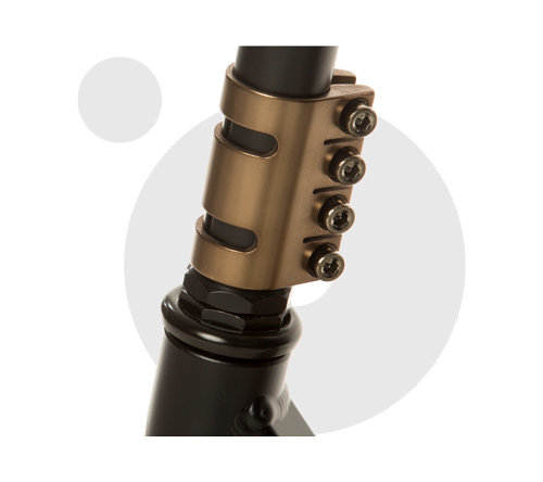 W naszych hulajnogach stunt stosujemy system hamulcowy FLEX BRAKE. Hamulec tego typu odzyskuje swój oryginalny kształt po każdym naciśnięciu. W hulajnogach z systemem FLEX BRAKE koła zużywają się dużo wolniej niż w przypadku zastosowania tańszych systemów, jak np. hamulca sprężynowego. System FLEX BRAKE dodatkowo ogranicza drgania.
