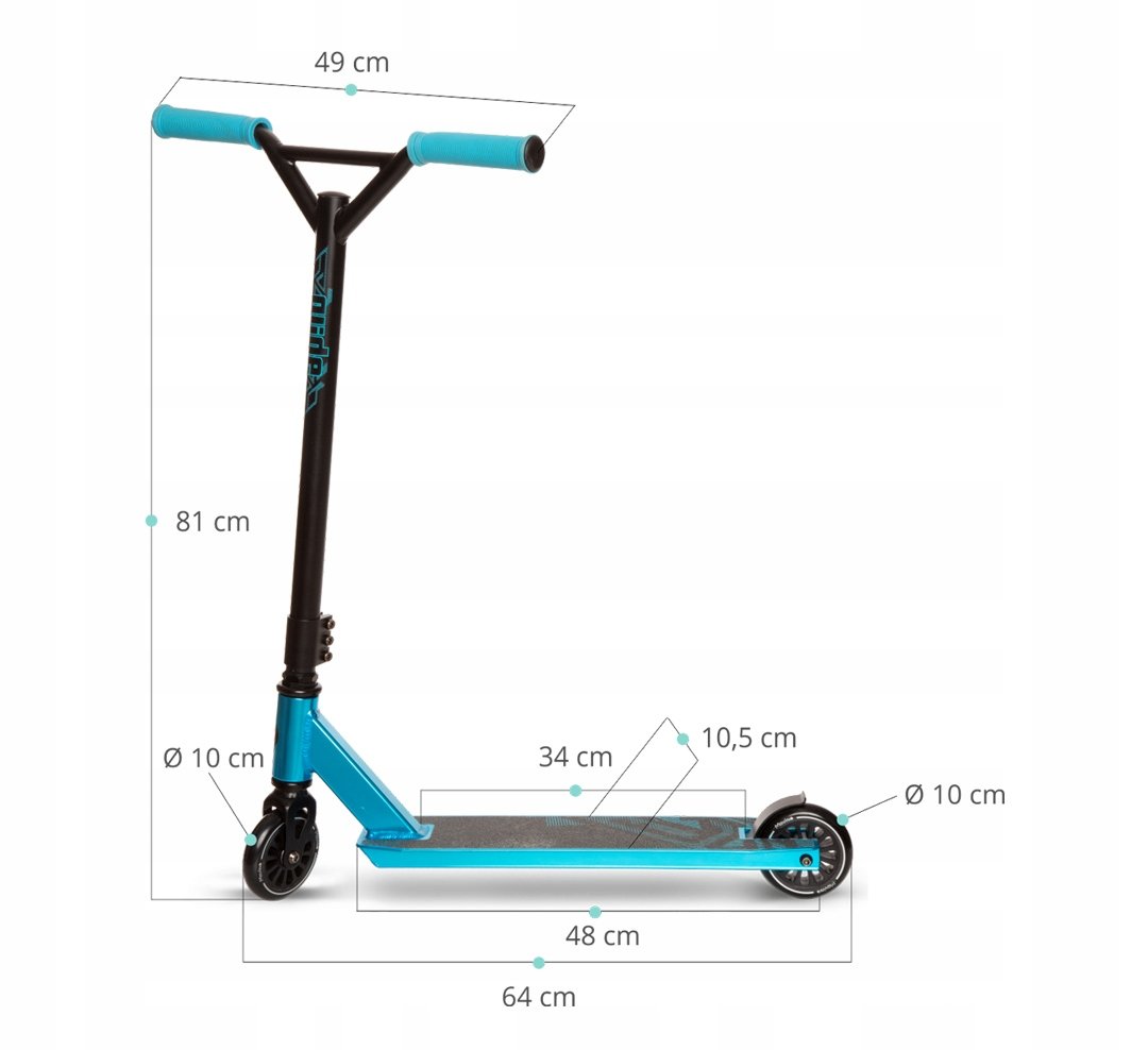 Waga użytkownika: 100 kg Waga hulajnogi: 3.4 kg |